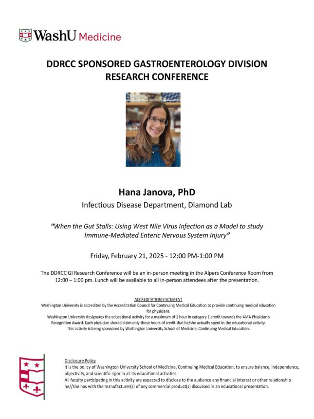DDRCC SPONSORED GASTROENTEROLOGY DIVISION RESEARCH CONFERENCE Feb 21, 2025 12:00 p.m.-1:00 p.m. Conferences Alpers Conference Room Add to: Google Calendar | Outlook | iCal File